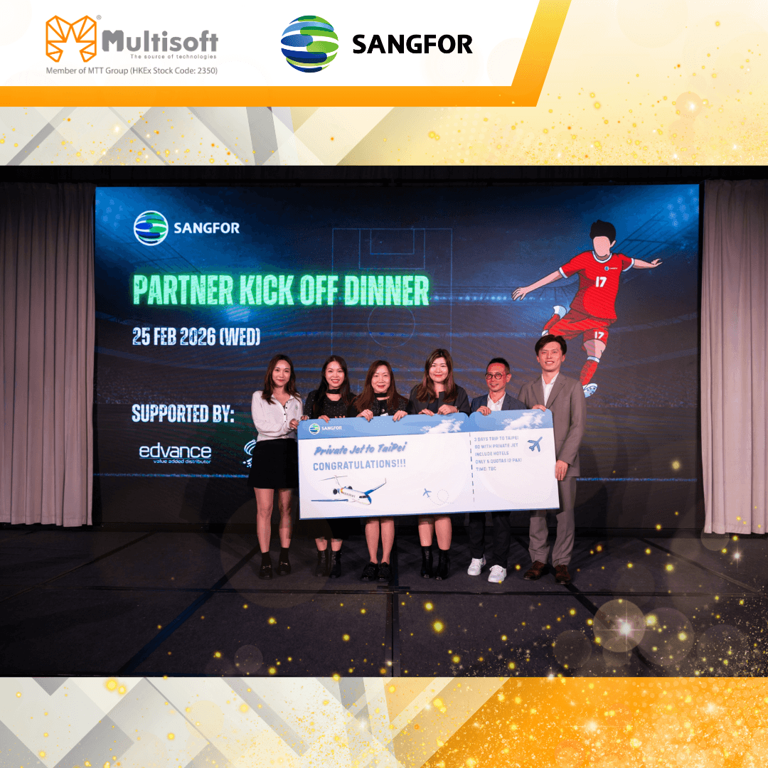 這三大獎項不僅肯定了我們在網絡安全方案上的領航地位,更見證 Multisoft 與 SANGFOR 多年來緊密合作、攜手為客戶提供頂尖安全解決方案的成果。